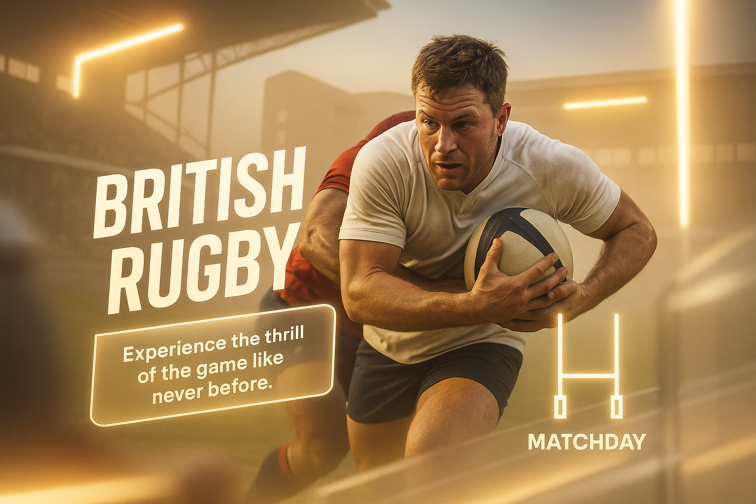 Dynamic Rugby Promotional Image Featuring Action Shot of Player