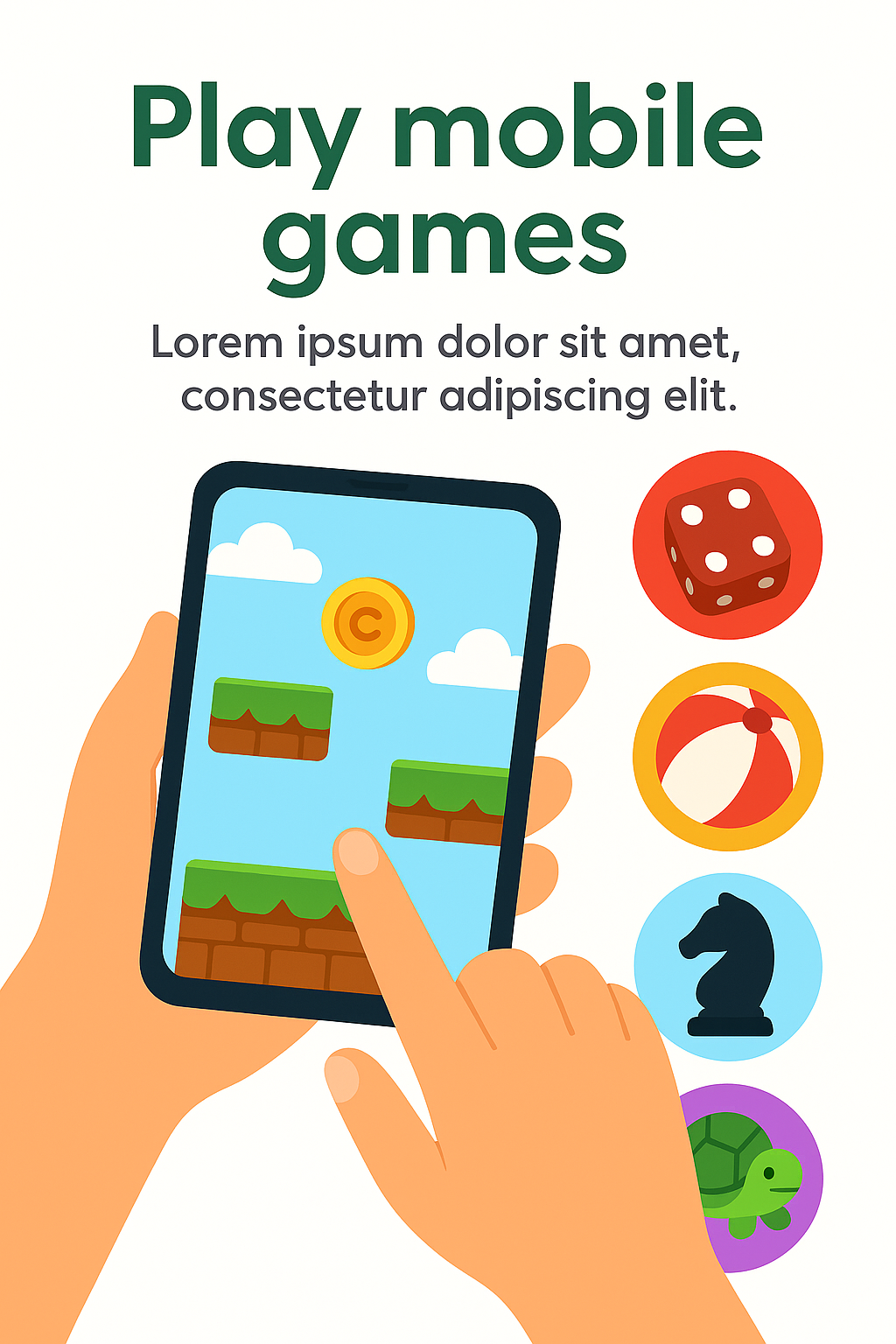 Vibrant graphic showcasing mobile gaming with playful elements, ideal for app promotion or gaming marketing campaigns targeting casual gamers.