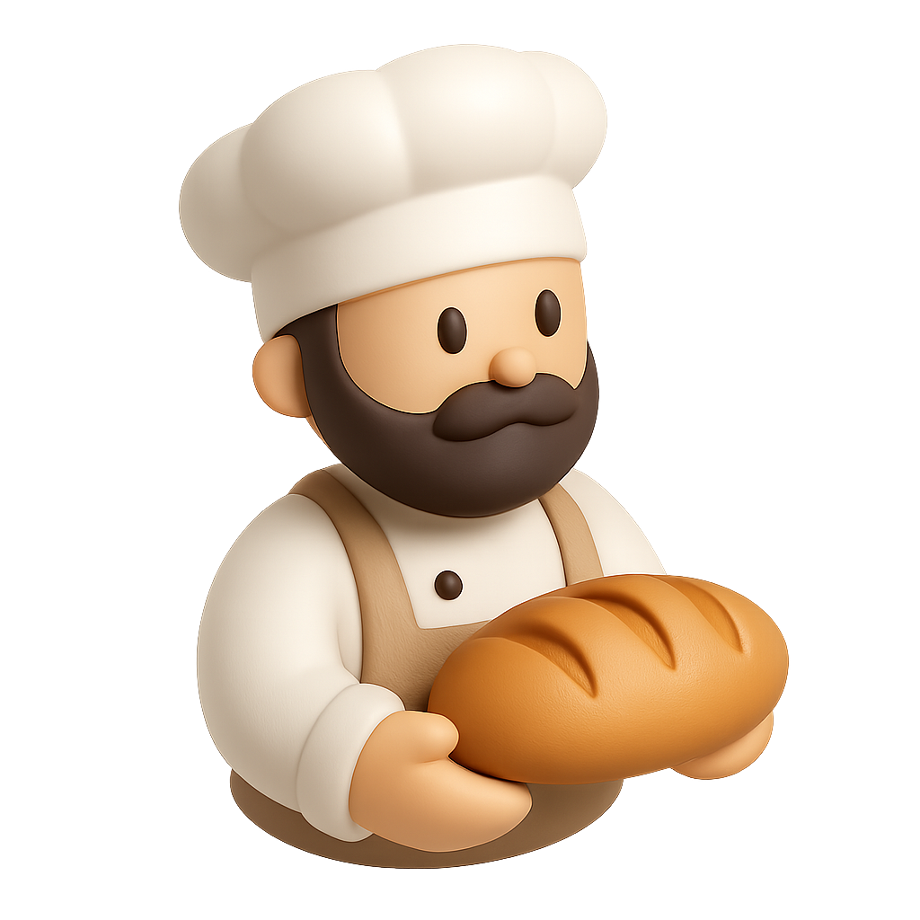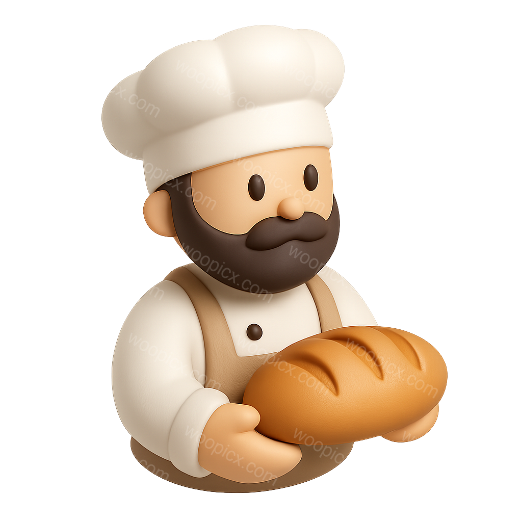 Stylized 3D Bakery Bread Icon with Baker