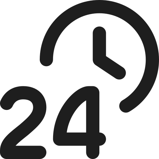 basic simple icon: 24/7, 24 hours, all day, always open, around the clock