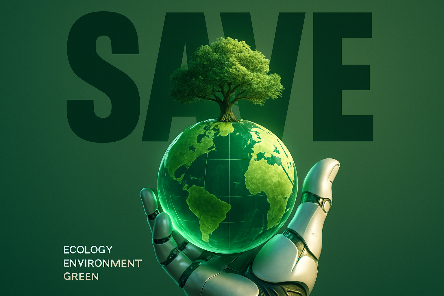 /Collection: /by davooda/Type: PNG/A futuristic robotic hand cradles a crystal glass globe depicting Earth, symbolizing ecological preservation. A lush tree emerges from the globe, emphasizing sustainability and technology's role in saving the planet.