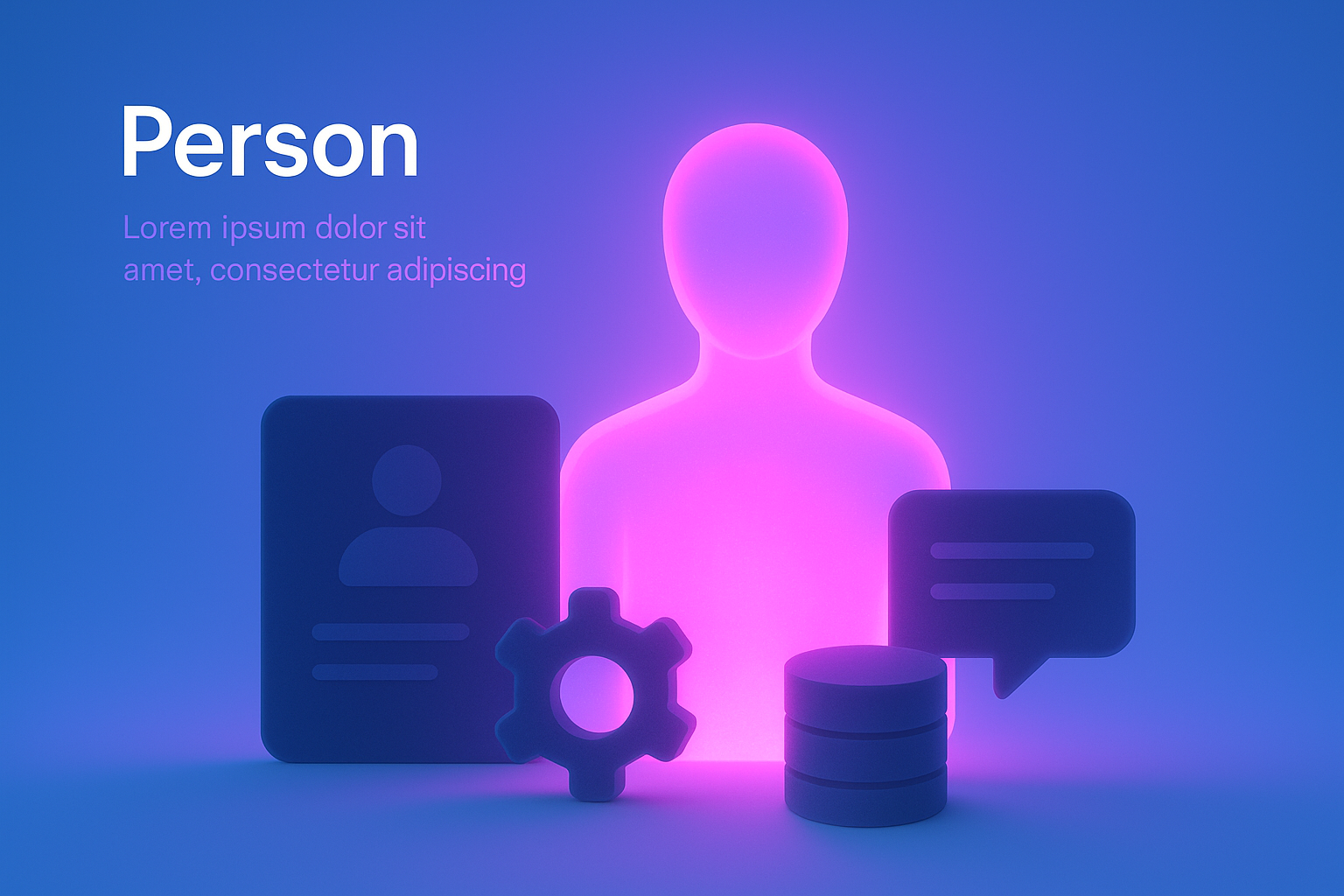 /Collection: /by davooda/Type: PNG/A vibrant neon composition centered around a figure, illuminated with a soft pink glow. The scene features various objects like icons and speech bubbles, set against a solid blue background, creating a harmonious atmosphere.