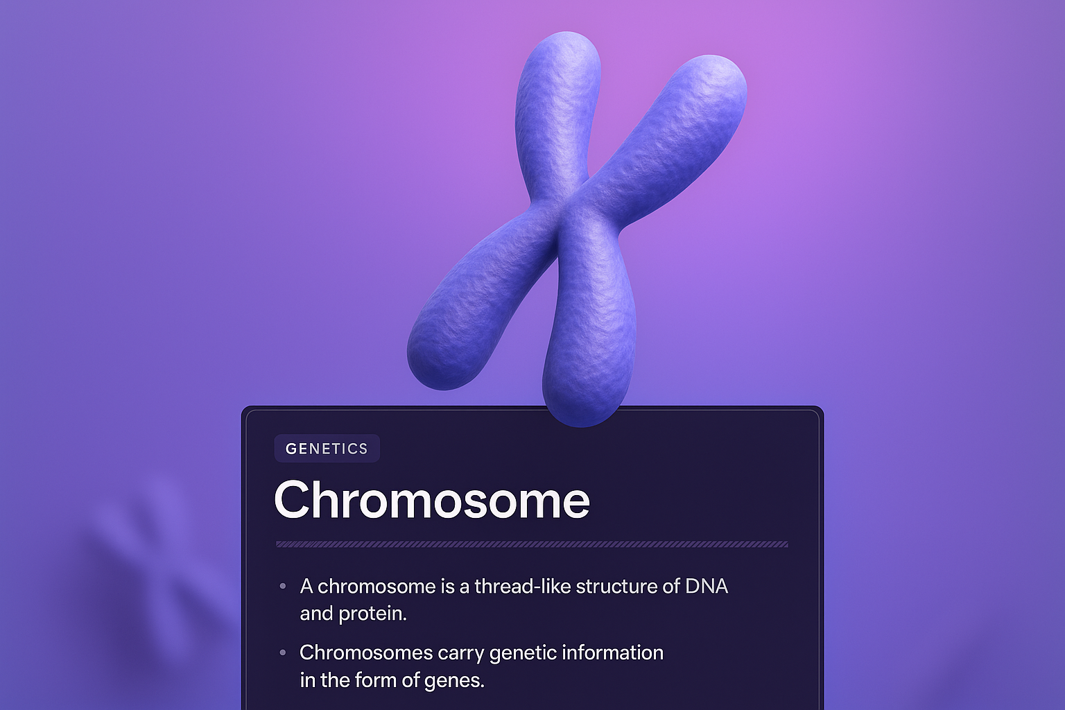 A striking 3D illustration of a chromosome, set against a smooth gradient background. Accompanied by an informative block detailing genetic information, enhancing the visual appeal.