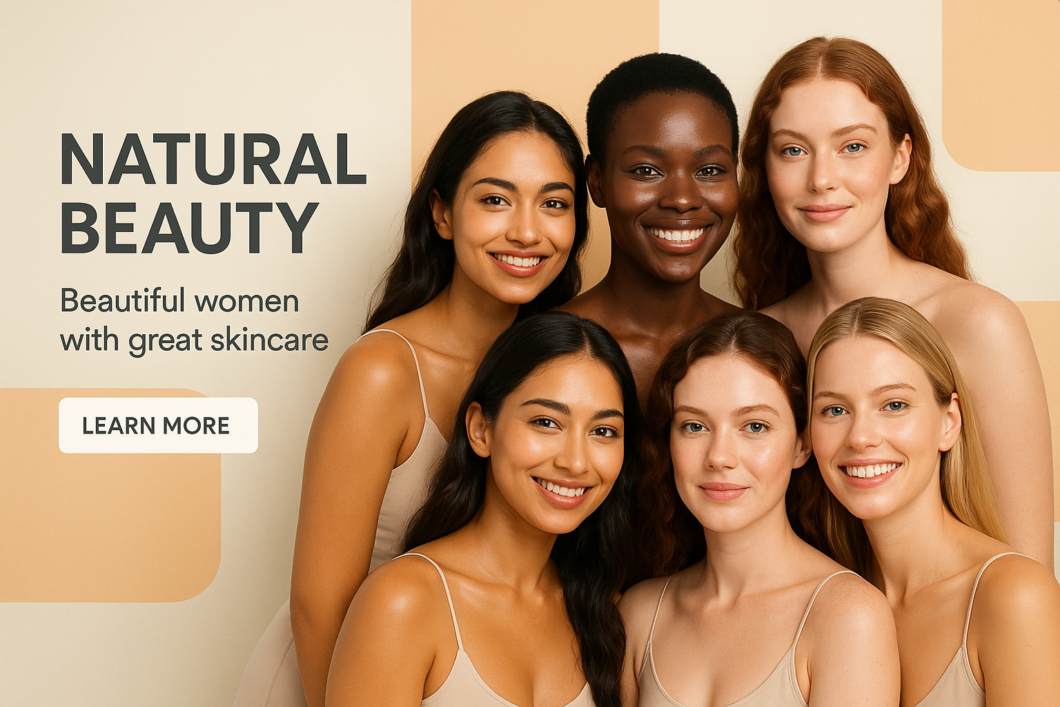 /Collection: /by davooda/Type: PNG/A portrait of a diverse group of beautiful women showcasing natural beauty and glowing skin. The modern layout features bold typography and a harmonious background.