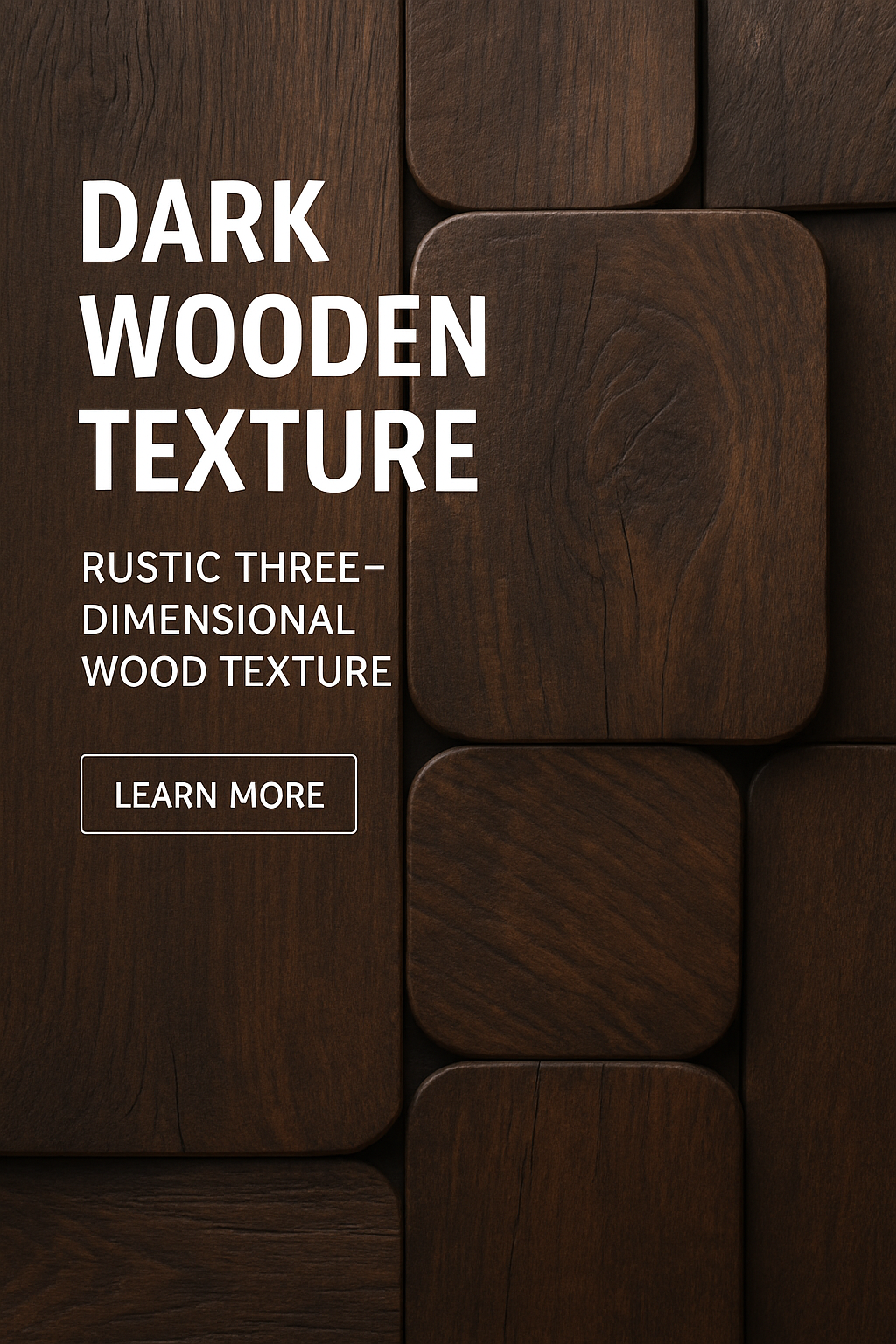 A modern design featuring a rich dark wooden texture. The layout includes bold typography with a clear hierarchy and a call-to-action button, all in a well-balanced composition.