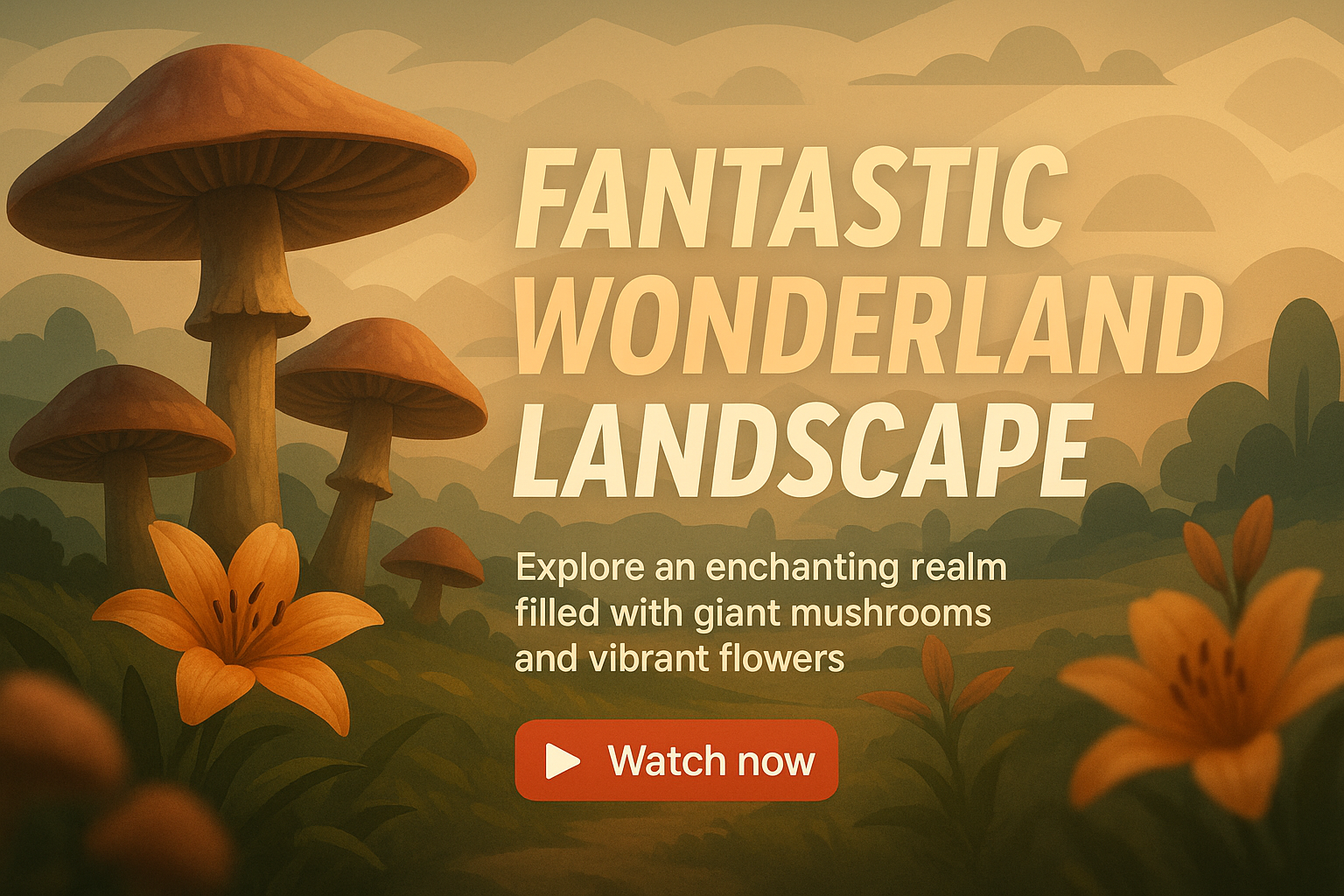 Enchanted Fantasy Landscape Illustration with Mushrooms and Flowers