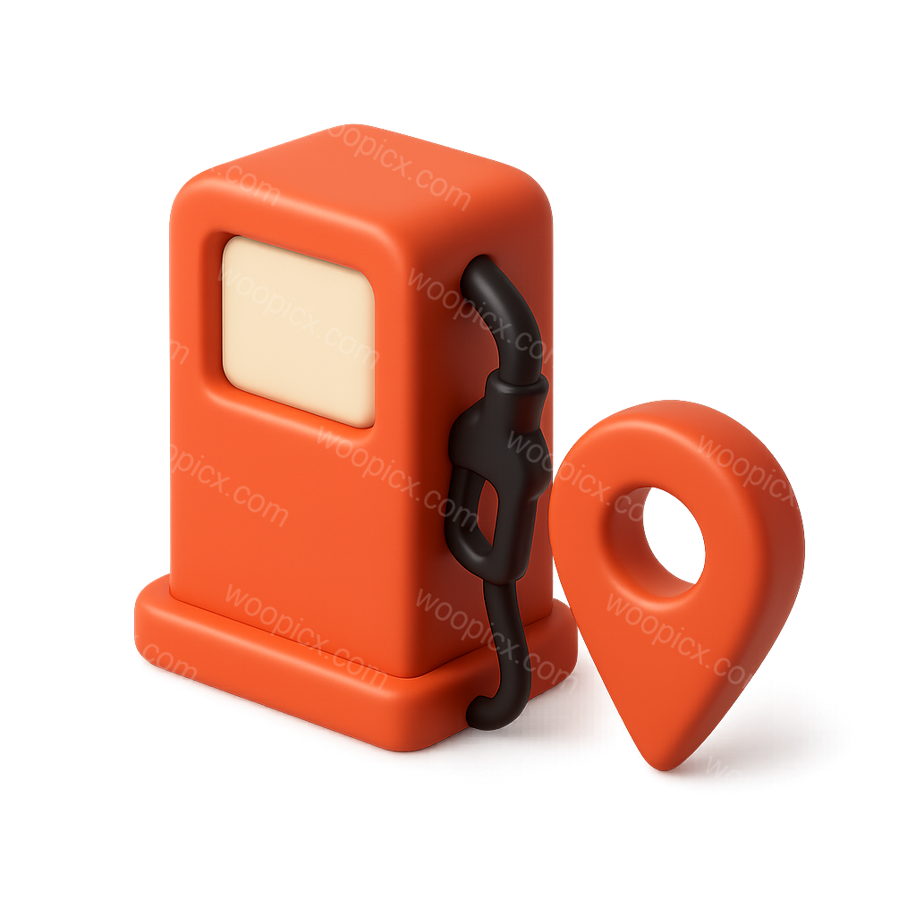 A 3D icon depicting a fuel pump alongside a location marker, designed with a soft, rounded aesthetic and a transparent background, showcasing volumetric effects.