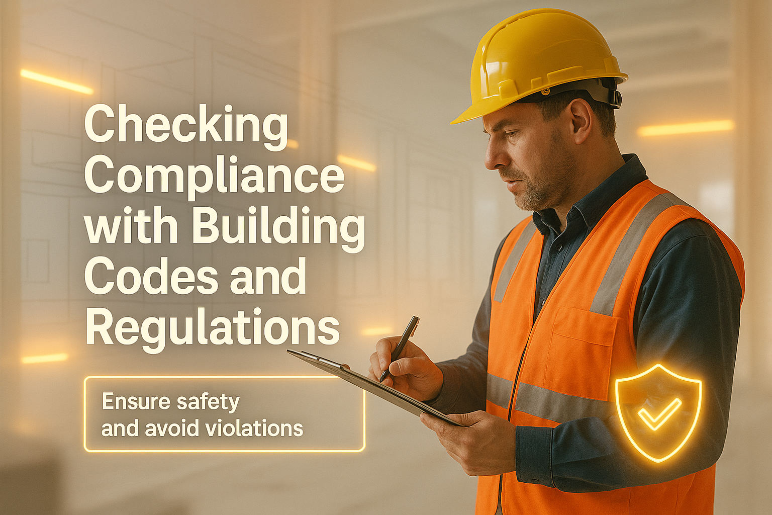 /Collection: /by davooda/Type: PNG/Illustrative image depicting a construction professional reviewing building codes and regulations. The clean design and safety elements make it suitable for industry-related content.