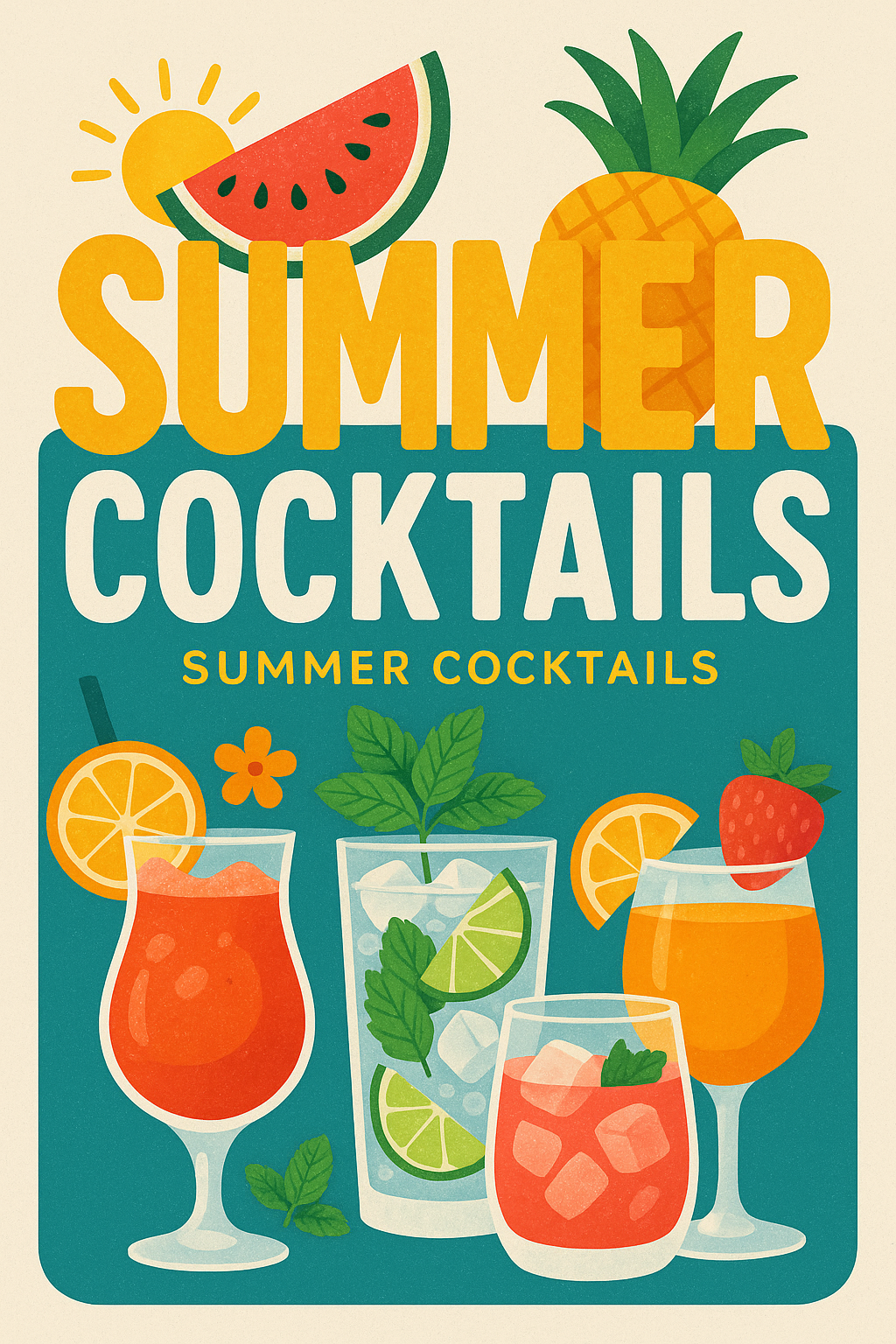 Vibrant Summer Cocktails Graphic with Colorful Drink Illustrations