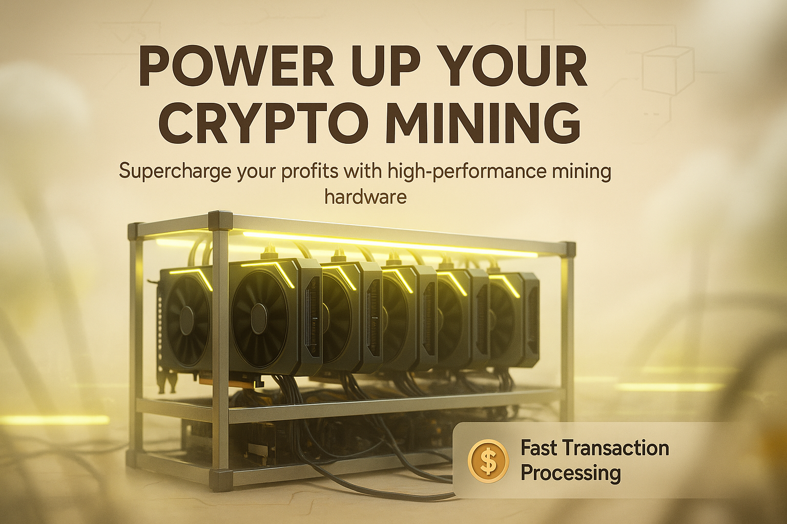 Engaging promotional image showcasing high-performance crypto mining hardware, designed for digital currency enthusiasts and miners. Ideal for marketing and advertising.