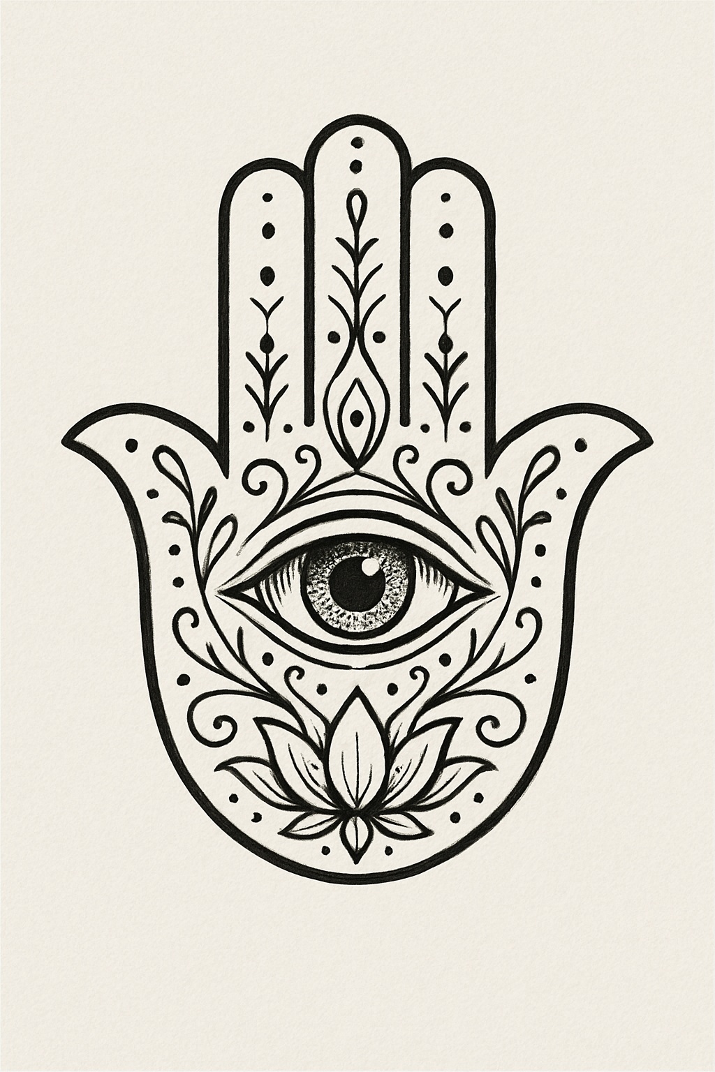 Intricate Hamsa Hand Design with Eye and Floral Elements