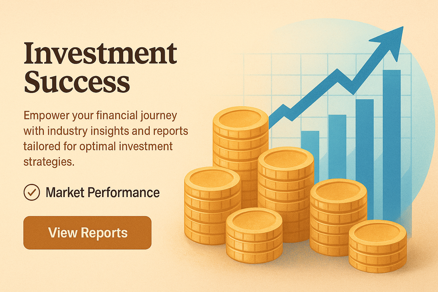 /Collection: /by davooda/Type: PNG/A visually appealing landing page slide featuring 3D coins stacked with a blue finance graph indicating growth. Highlights investment strategies and market performance insights.