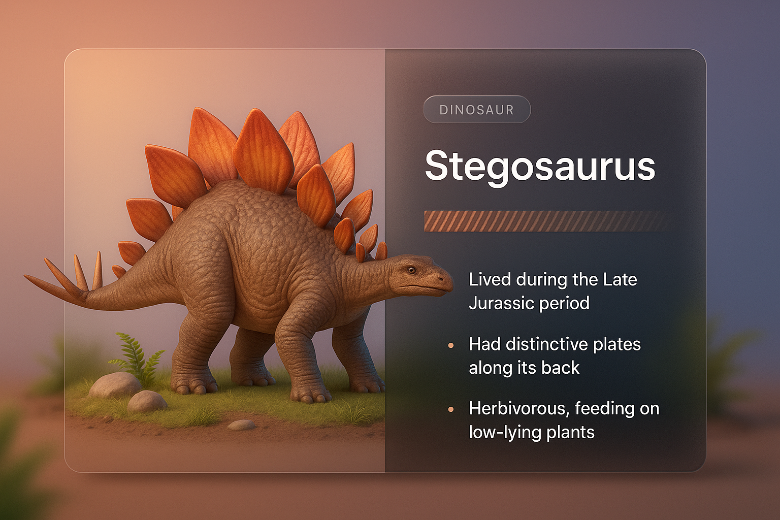 /Collection: /by davooda/Type: PNG/A detailed 3D illustration of a Stegosaurus set against a gradient background. The design features informative text blocks with a modern aesthetic, integrating visual elements seamlessly.