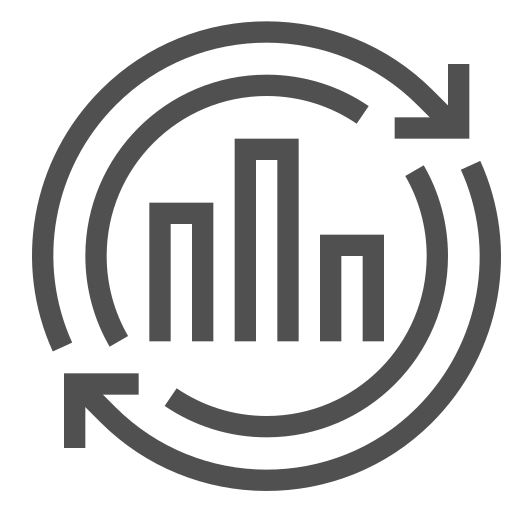outline simple icon: analytics, bar chart, data analysis, data cycle, graph