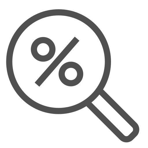 outline simple icon: deal, discount, magnifying glass, offer, percentage