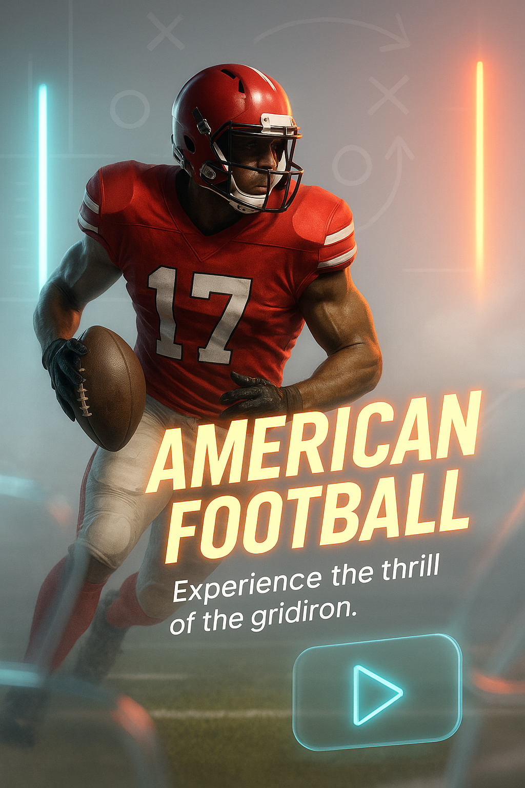 Vibrant promotional image showcasing an athlete in action, designed to evoke excitement for American football. Ideal for marketing sports events or programs.