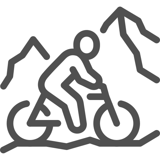 outline simple icon: activity, adventure, bike trail, cycling, mountain biking