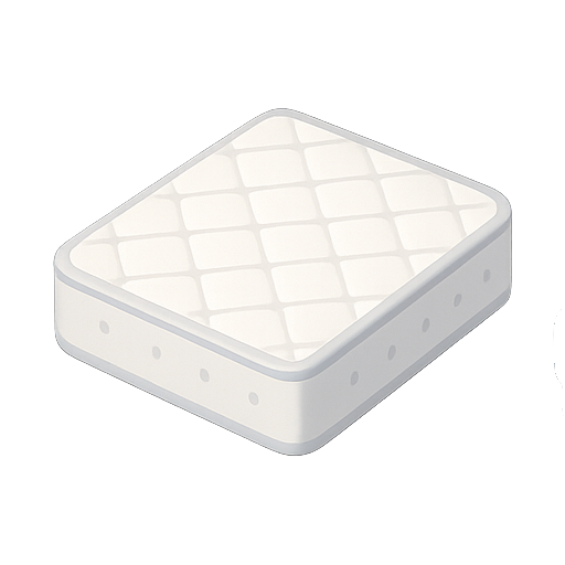 A clean and simple 3D illustration of a mattress, showcasing a quilted texture. Ideal for bedroom decor presentations or furniture-related content.
