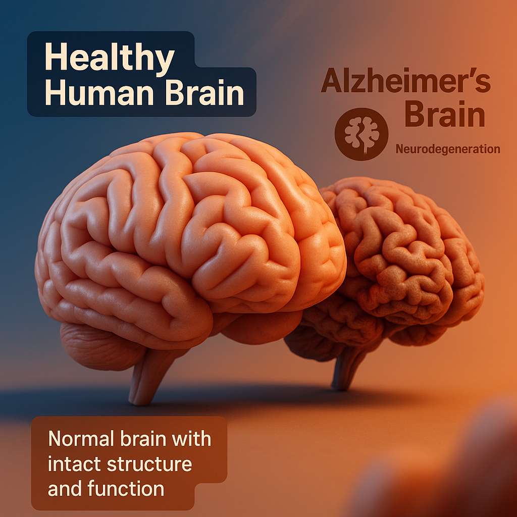 Comparative Illustration of Healthy and Alzheimer's Affected Brain