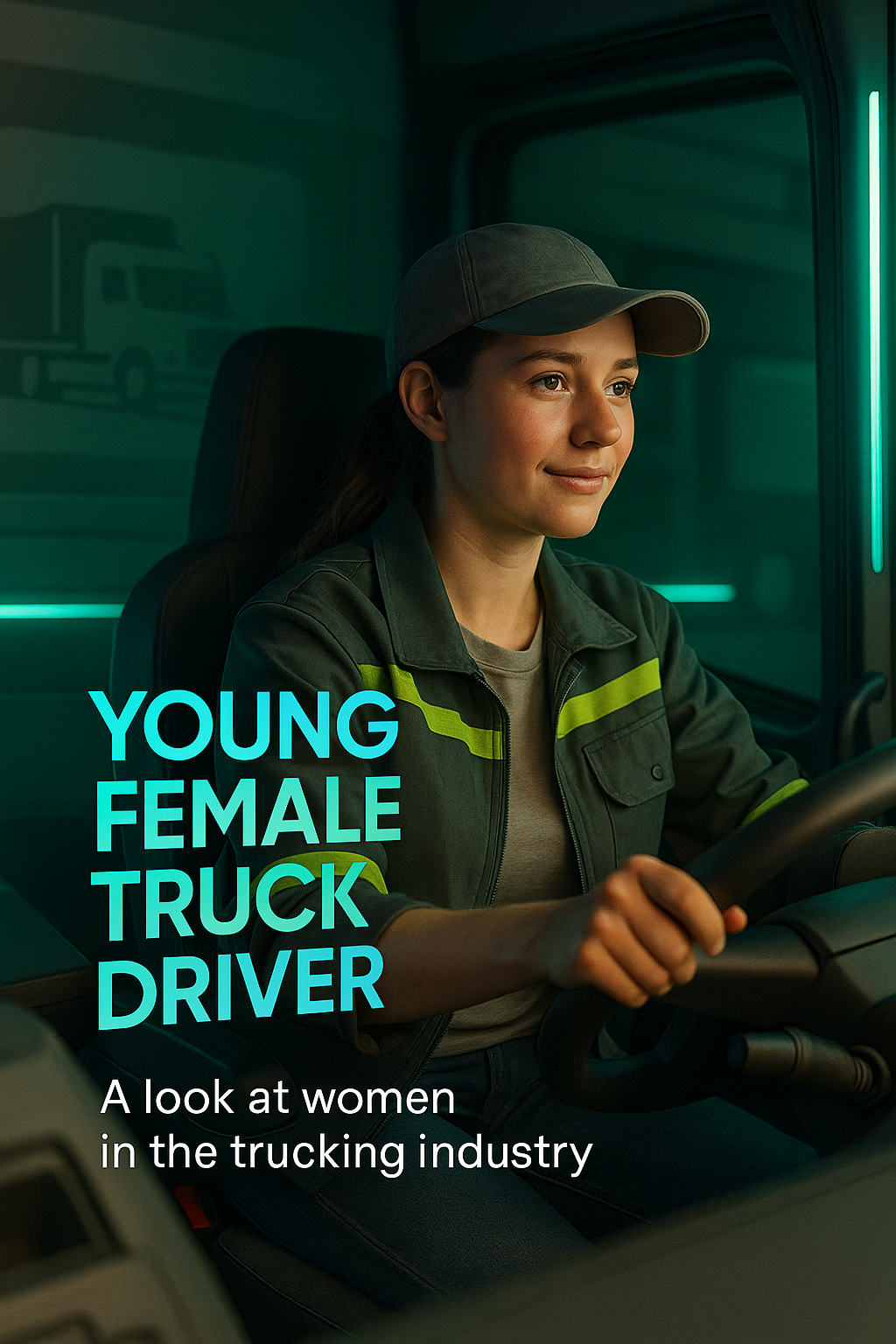 Empowering Visual of a Young Female Truck Driver in Industry Setting