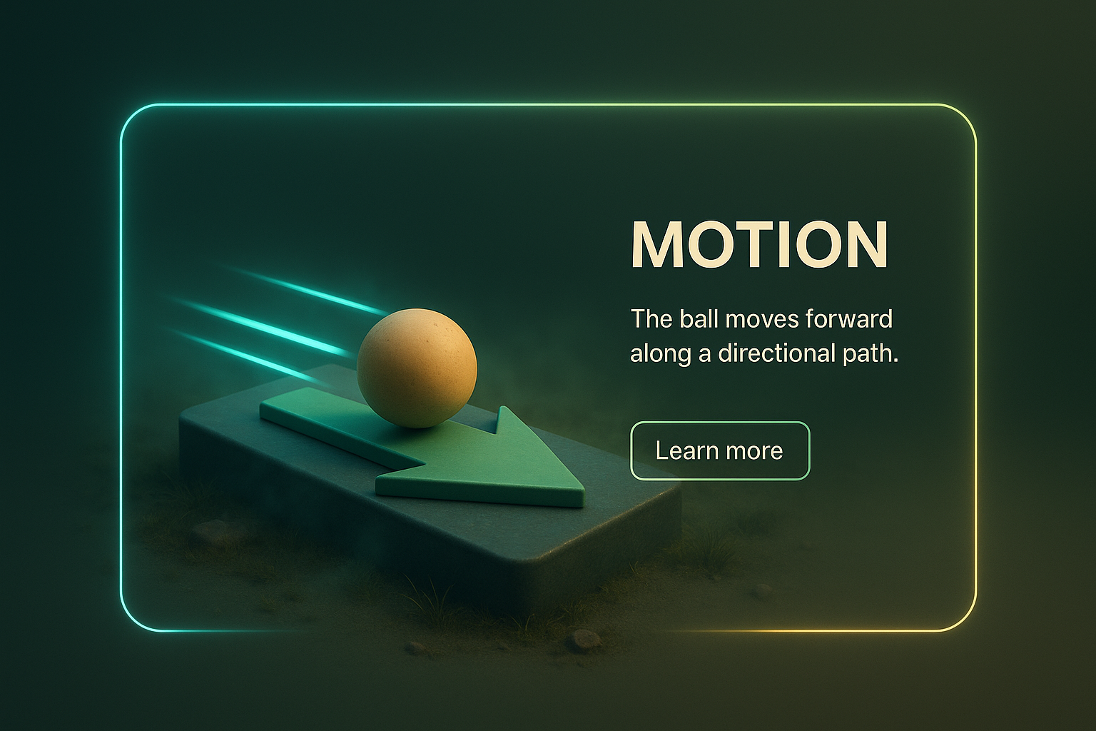 A visually striking 3D scene showcasing motion with a glowing ball on a directional path. Neon accents illuminate the environment, creating a captivating atmosphere.