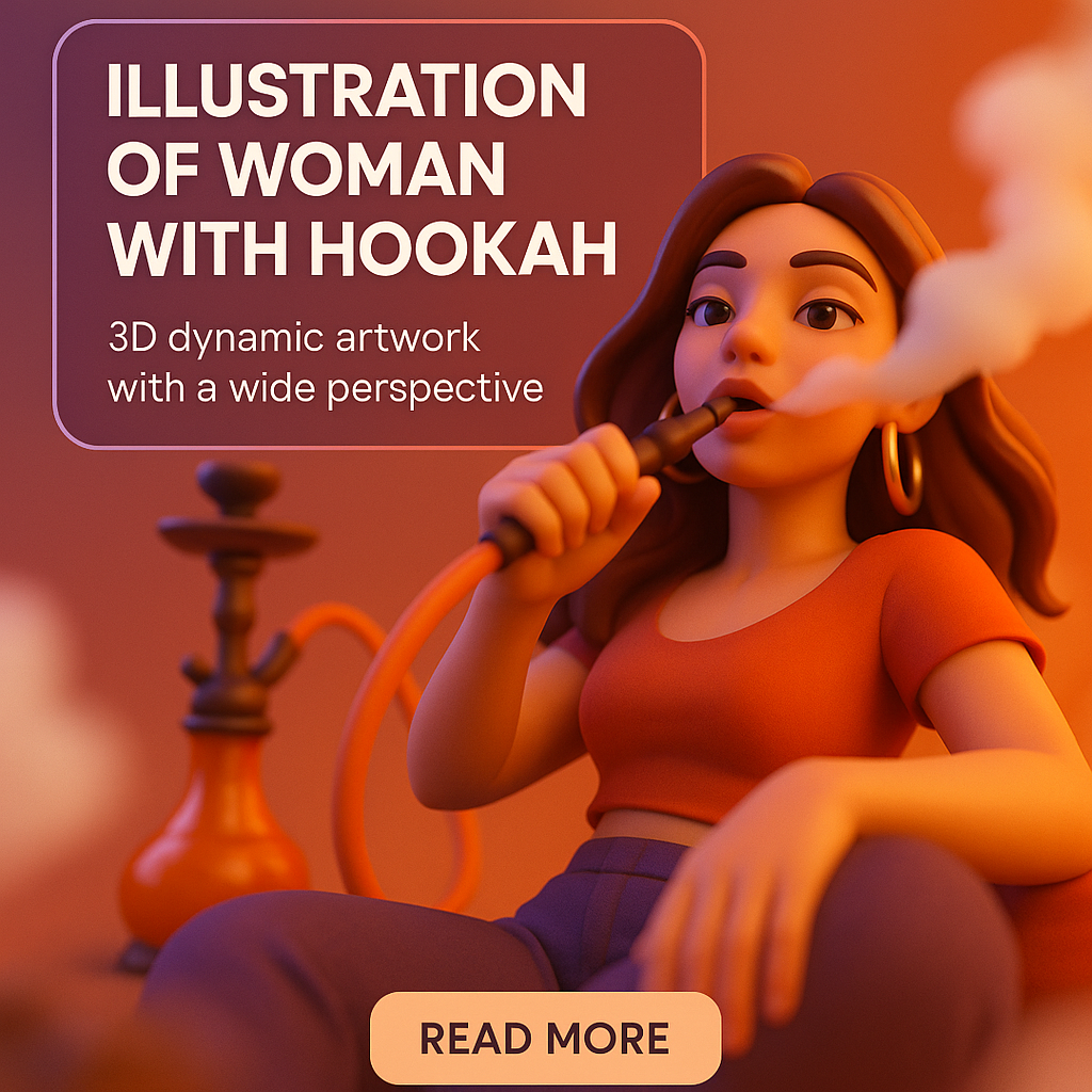 3D Illustration of a Woman Smoking Hookah in Dynamic Style