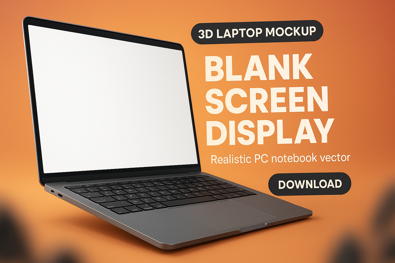 3D Laptop Mockup with Blank Screen Display for Design Projects