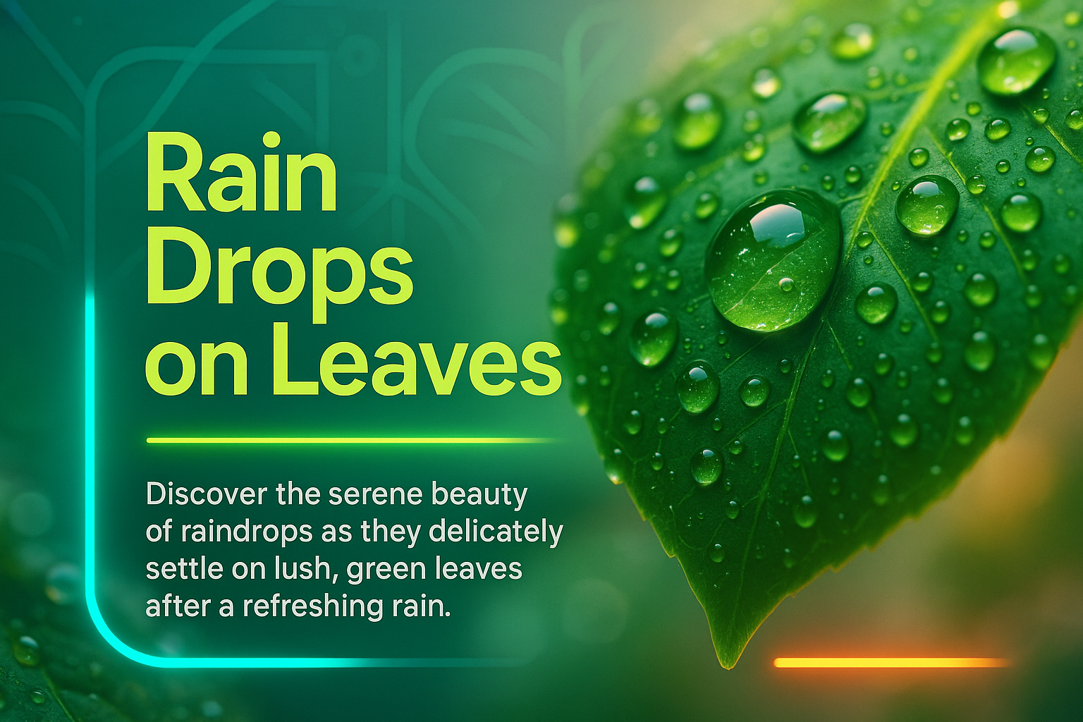 A vibrant close-up image showcasing the beauty of raindrops on lush green leaves, perfect for nature-themed projects or environmental awareness content.