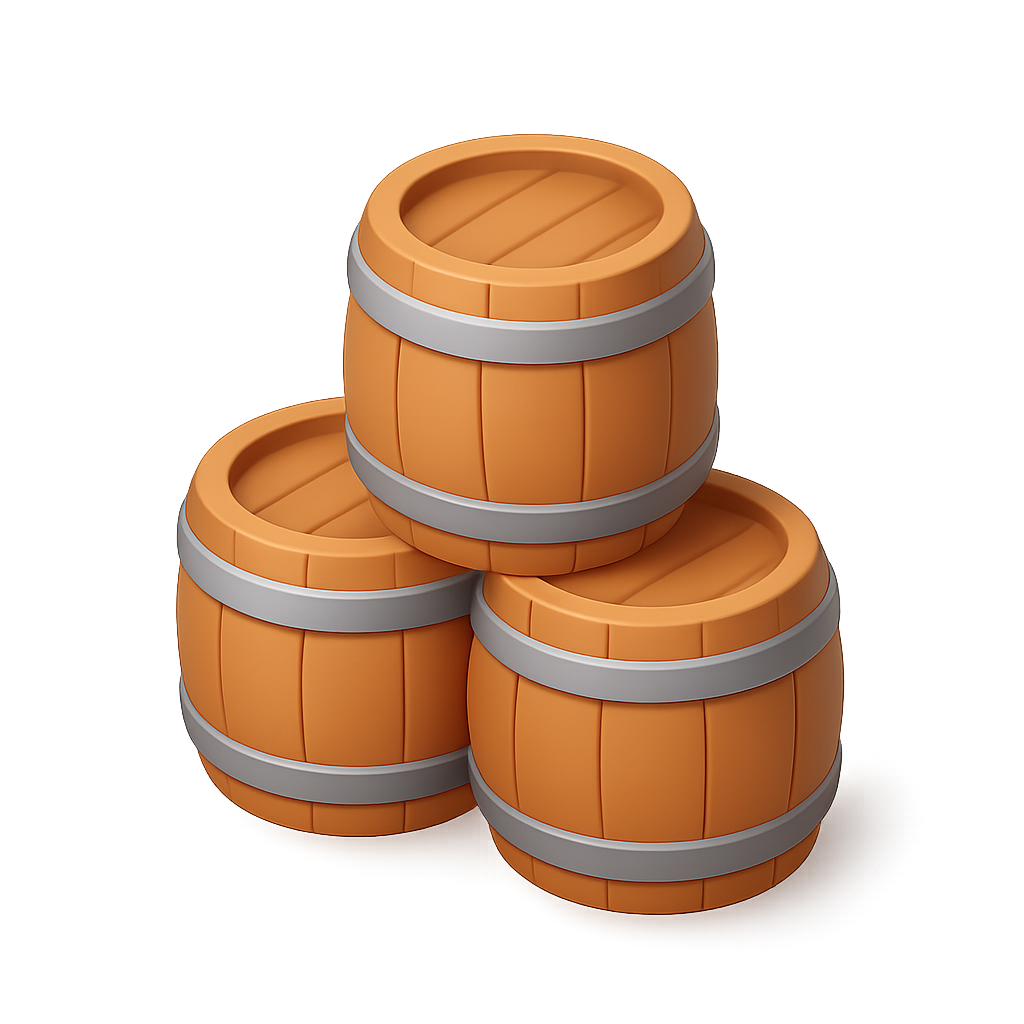 Stylized 3D Icon of Stacked Barrels with Isometric View
