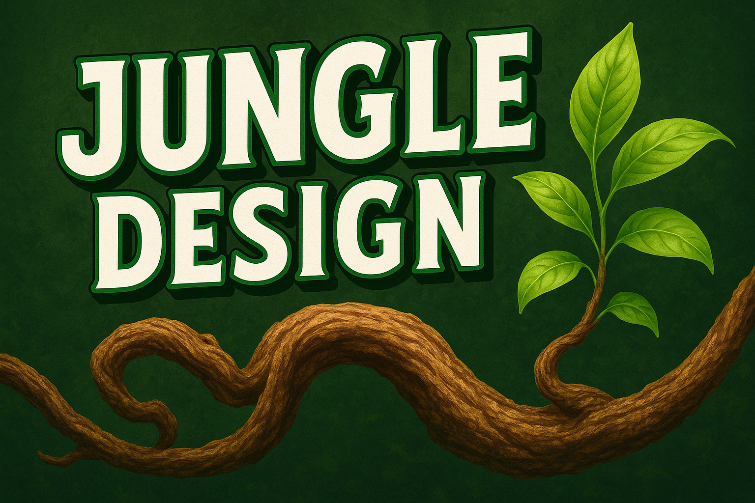 Vibrant jungle-themed graphic featuring bold typography and natural elements, suitable for creative projects or eco-friendly branding.