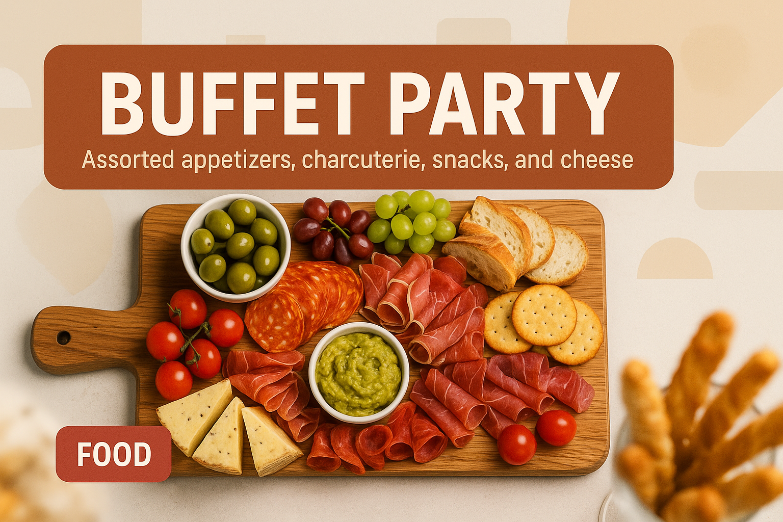 Charcuterie Board Display with Appetizers and Snacks
