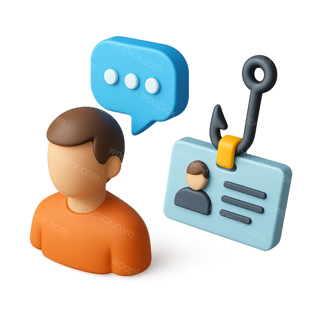 /Premium/Collection: /by davooda/Type: PNG/This image features a 3D icon depicting a user figure, a speech bubble, and a phishing hook with an ID card. The design showcases a modern isometric style with vibrant colors.