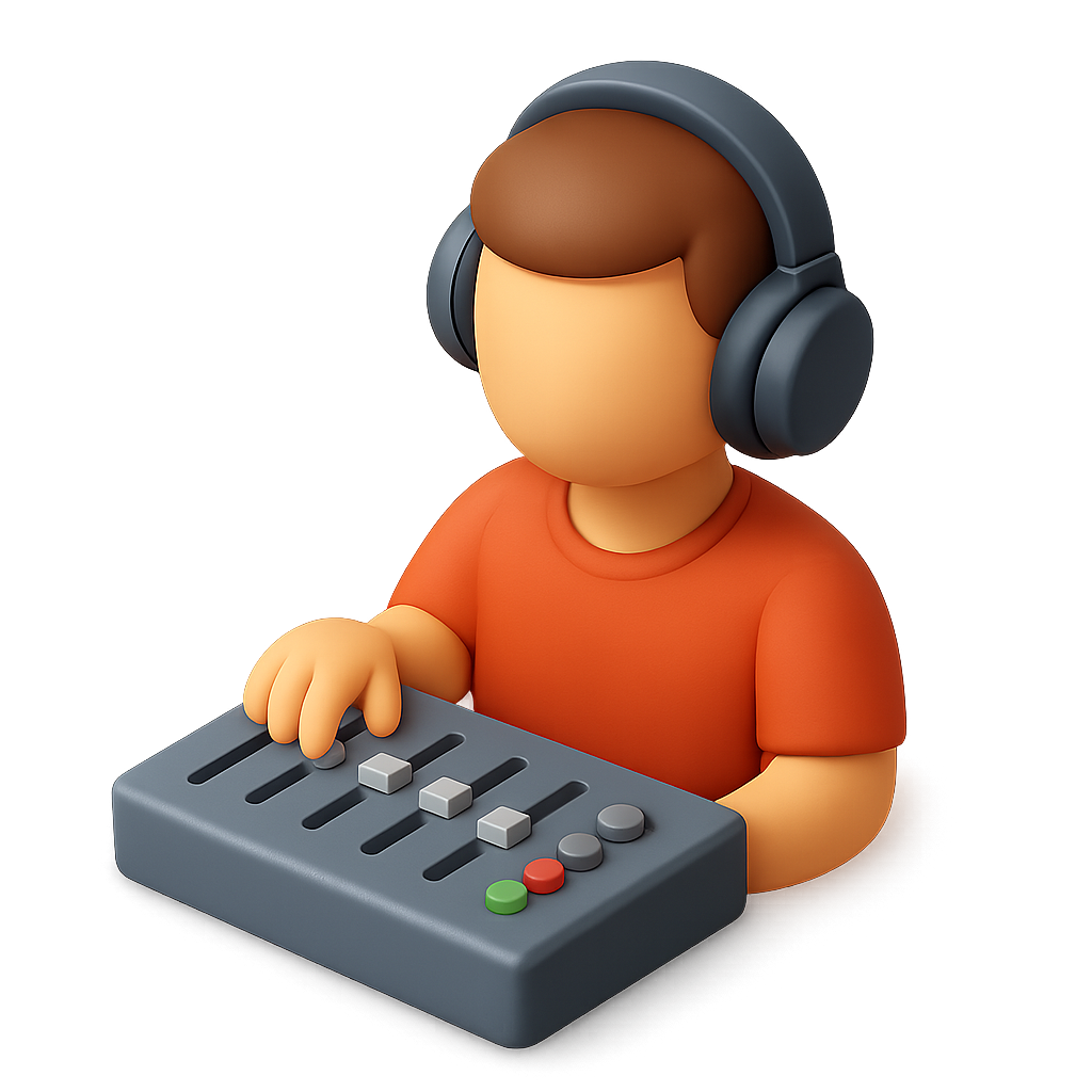 3D Sound Designer Icon with Headphones and Console