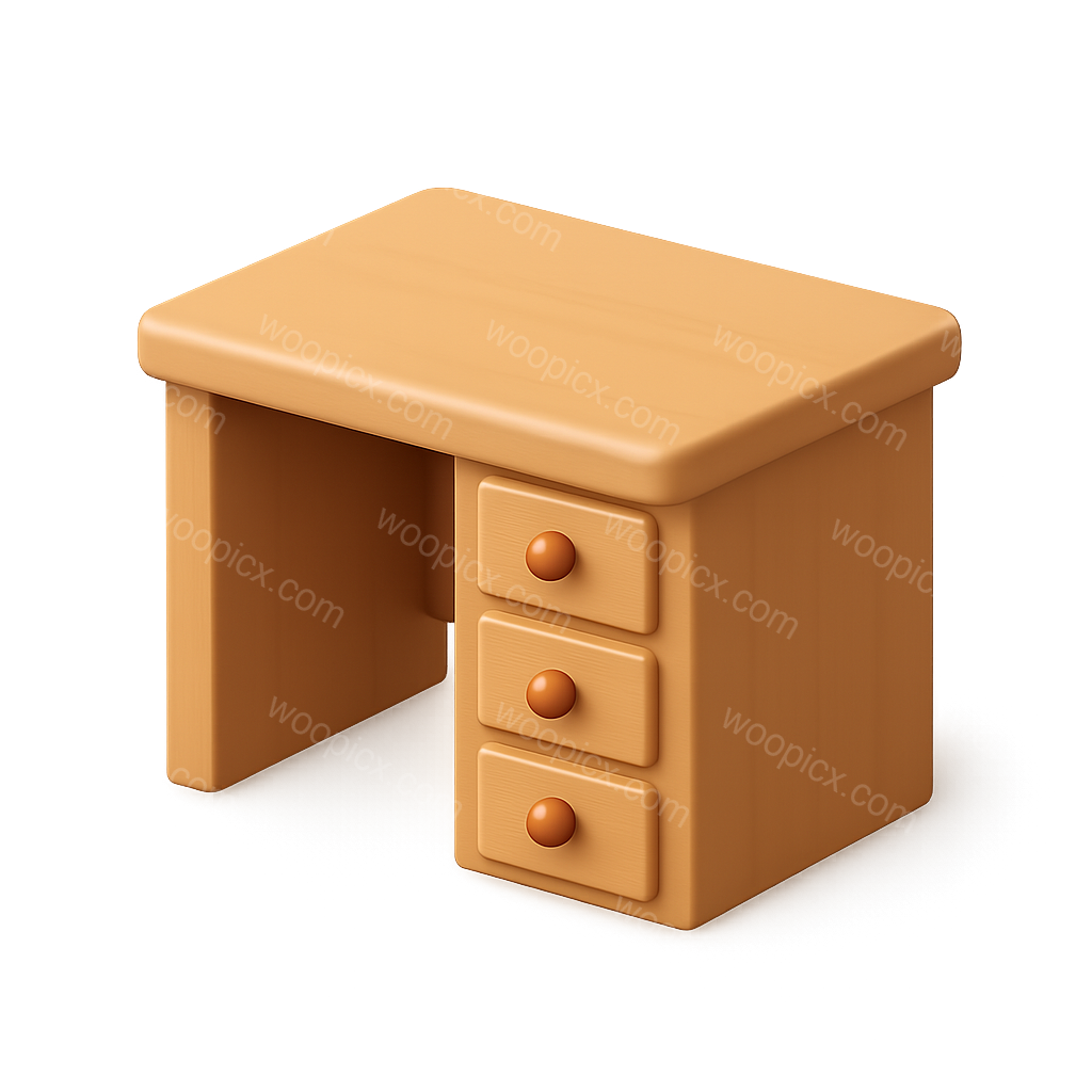 A simple 3D representation of a desk featuring three drawers. The design showcases a smooth, wooden texture with a warm color palette, viewed from a three-quarter angle.