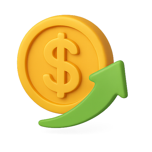 /Collection: /by davooda/Type: PNG/A 3D illustration featuring a dollar coin paired with an upward arrow, representing financial growth and prosperity. Ideal for finance-related content or marketing.