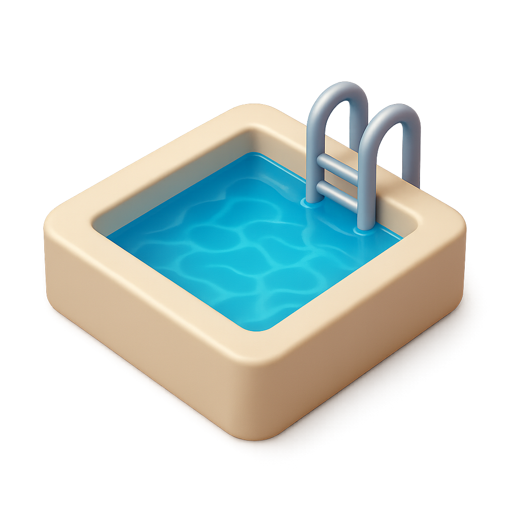 Stylized 3D Swimming Pool Icon with Water Effect