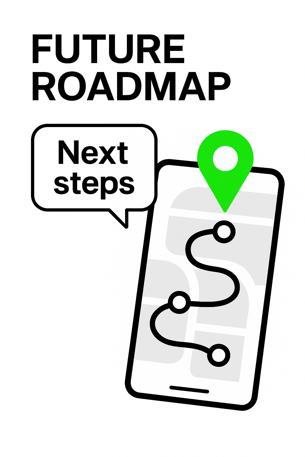 Stylized graphic illustrating a future roadmap concept featuring a mobile device and a speech bubble, ideal for presentations or strategic planning.