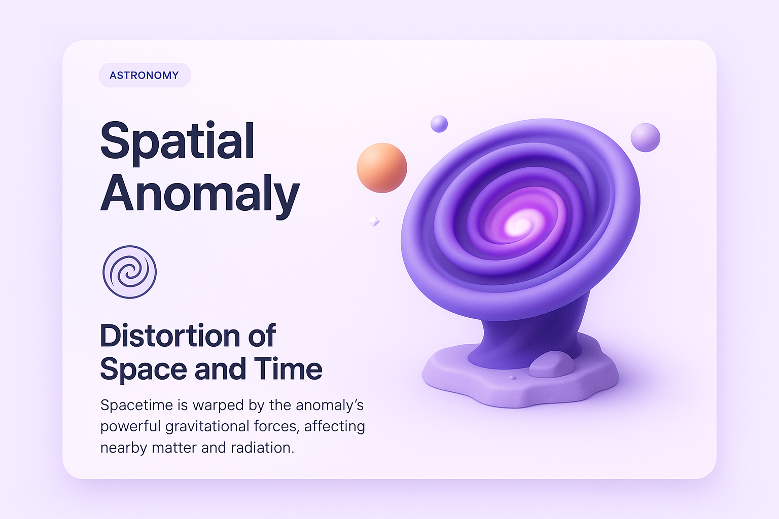 /Collection: /by davooda/Type: PNG/A bright and engaging 3D illustration showcasing a spatial anomaly, featuring a swirling purple structure surrounded by celestial orbs, emphasizing the distortion of space and time.
