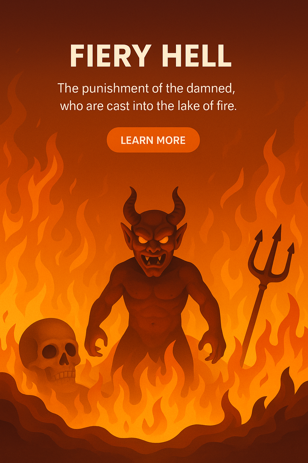 /Collection: /by davooda/Type: PNG/A detailed 3D illustration depicting a fiery hell with a demon emerging from flames. The background features a gradient transitioning to solid color, with a skull and trident included. Text elements are integrated for clarity.