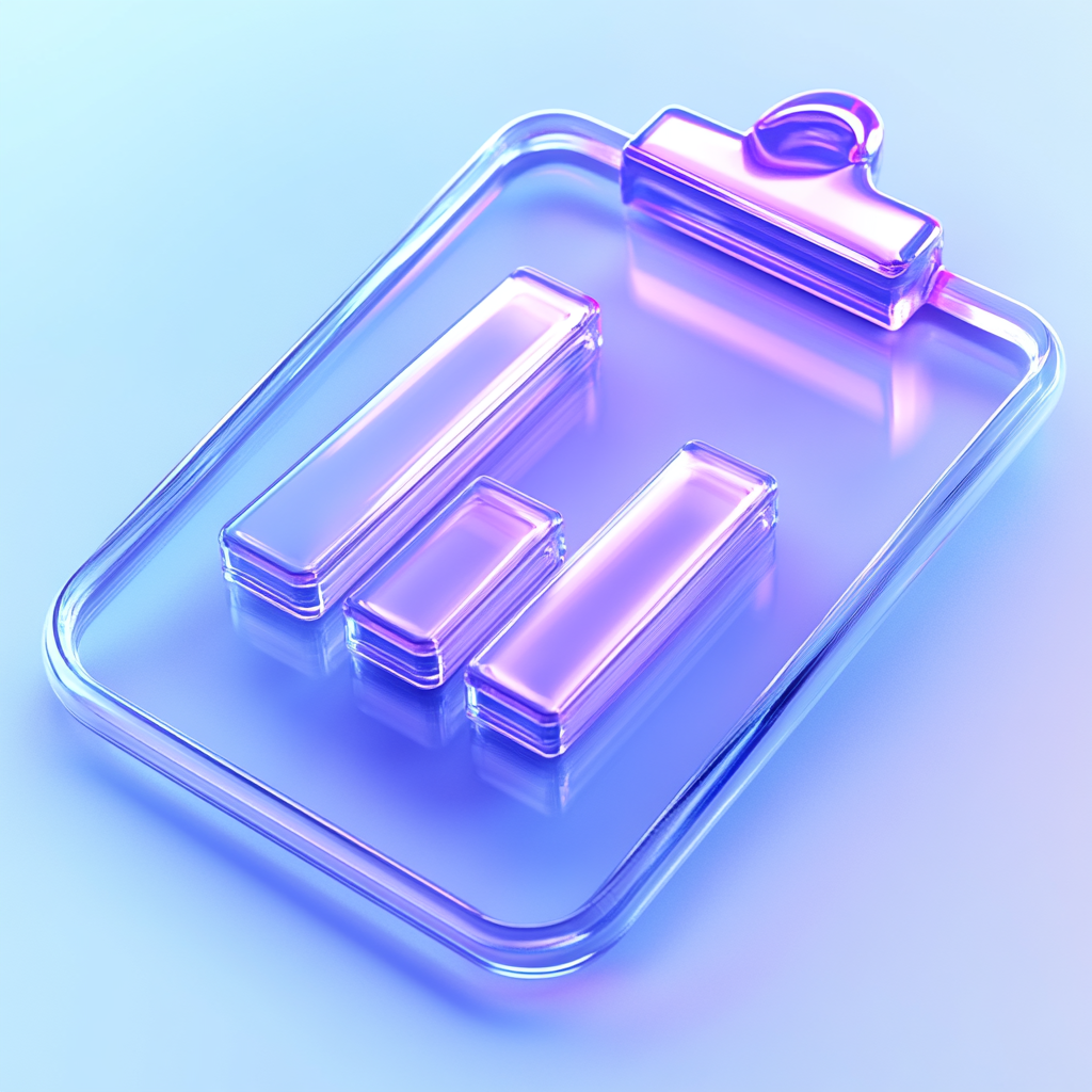 Stylized Transparent Clipboard Icon in Vibrant Colors