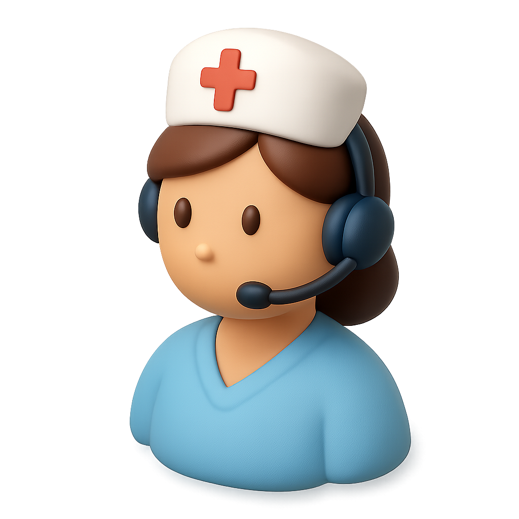 /Collection: /by davooda/Type: PNG/A stylized 3D icon of a nurse wearing a headset and a nurse's cap. The design features a three-quarter view, emphasizing a volumetric and isometric style with a soft, colorful appearance.