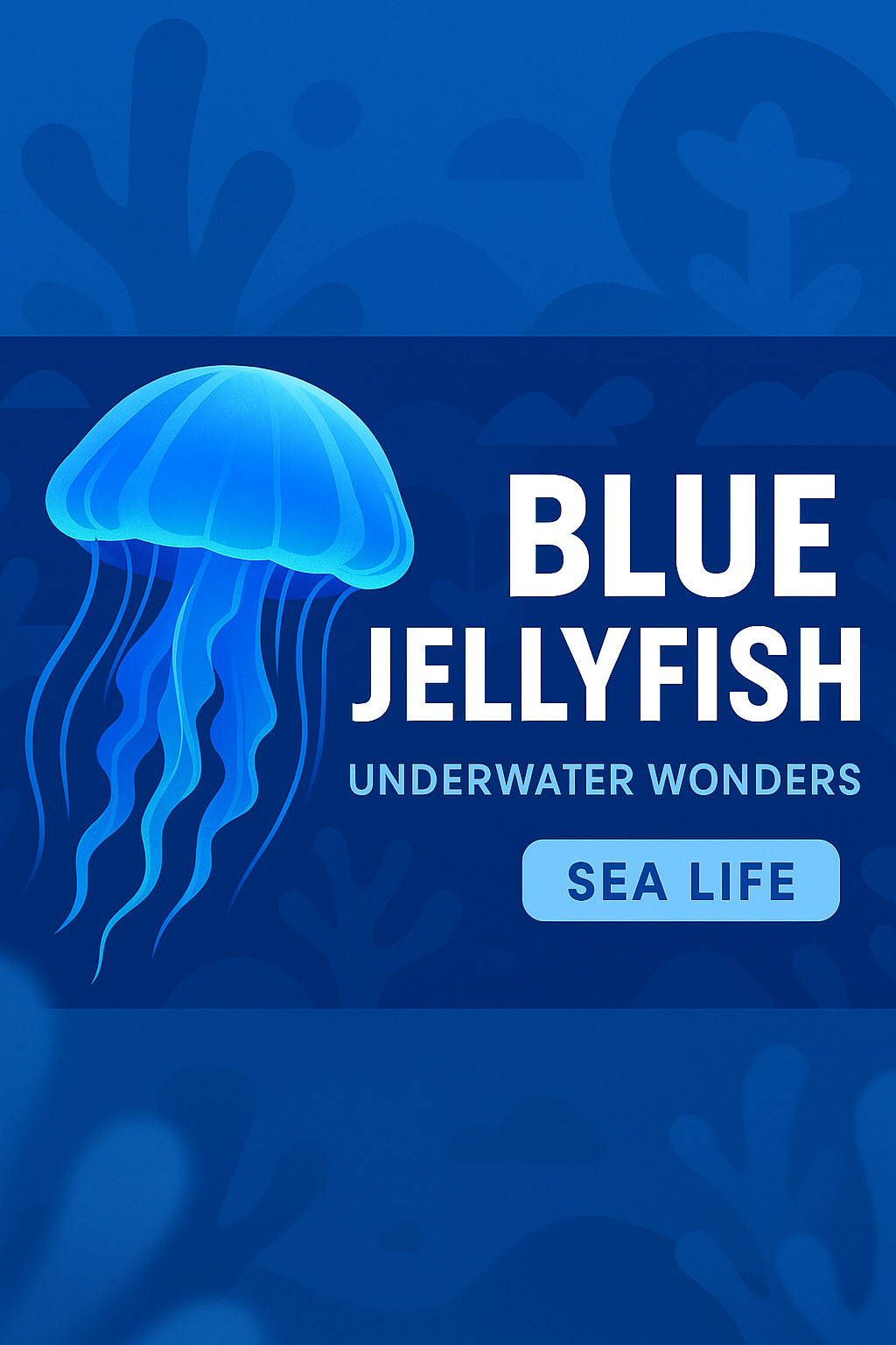 Illustrative Graphic of Blue Jellyfish in Underwater Theme