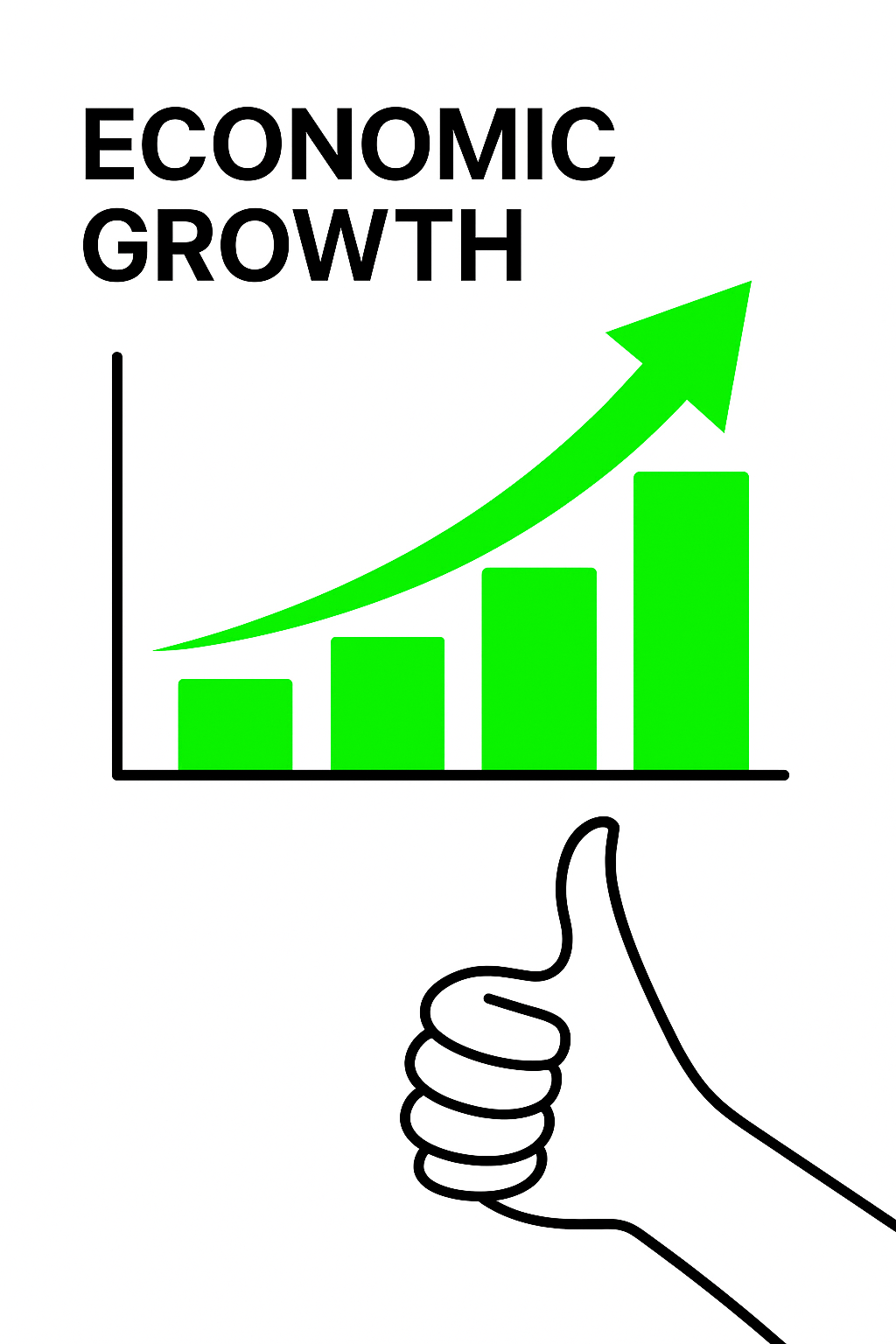 /Collection: /by davooda/Type: PNG/Simple and modern graphic illustrating economic growth through an upward trending bar graph and a thumbs-up hand gesture, ideal for financial presentations or reports.