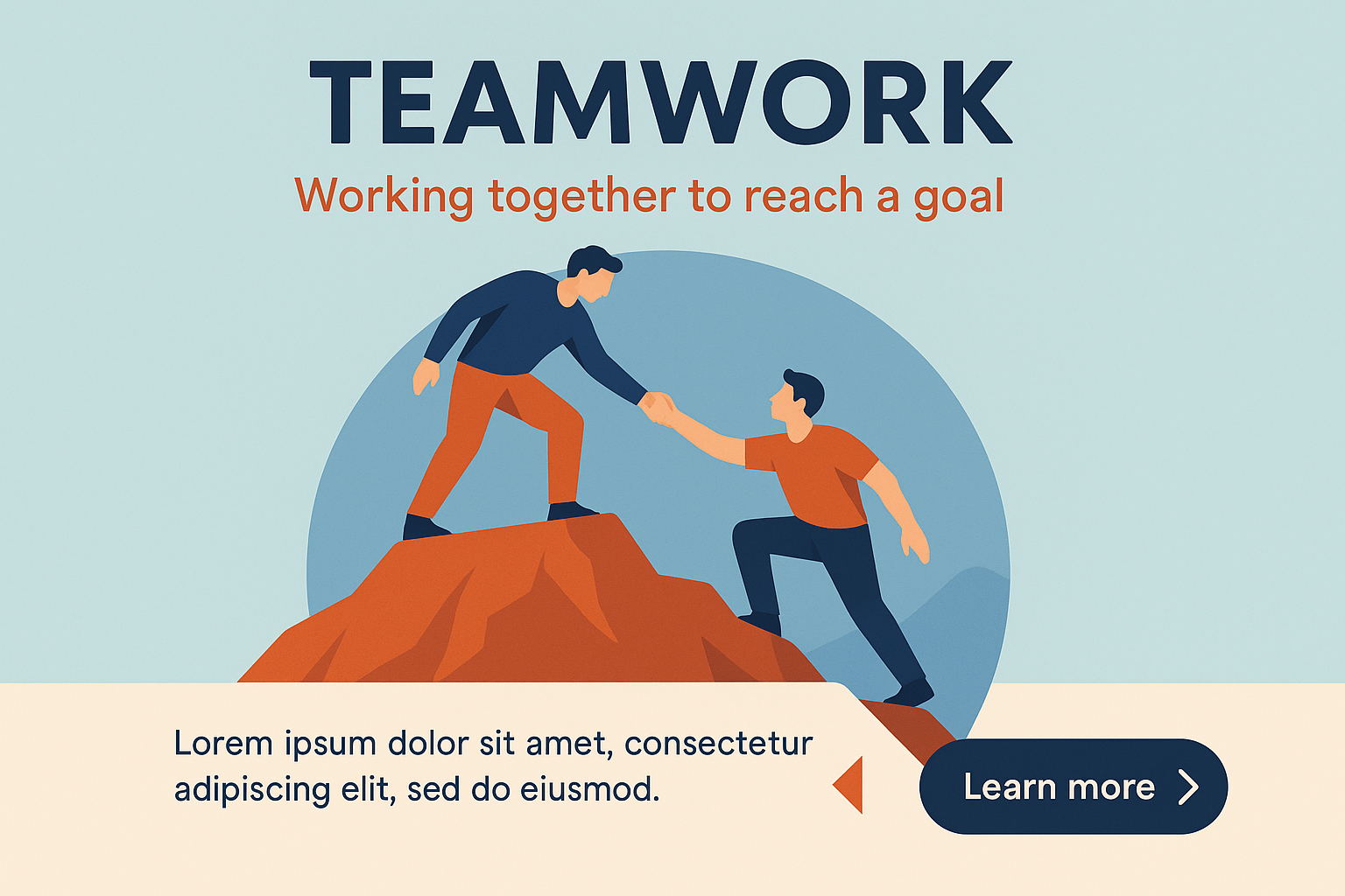 /Collection: /by davooda/Type: PNG/An engaging illustration depicting two men working together to reach a mountain top, symbolizing teamwork and collaboration. The design features a balanced composition with vibrant colors.