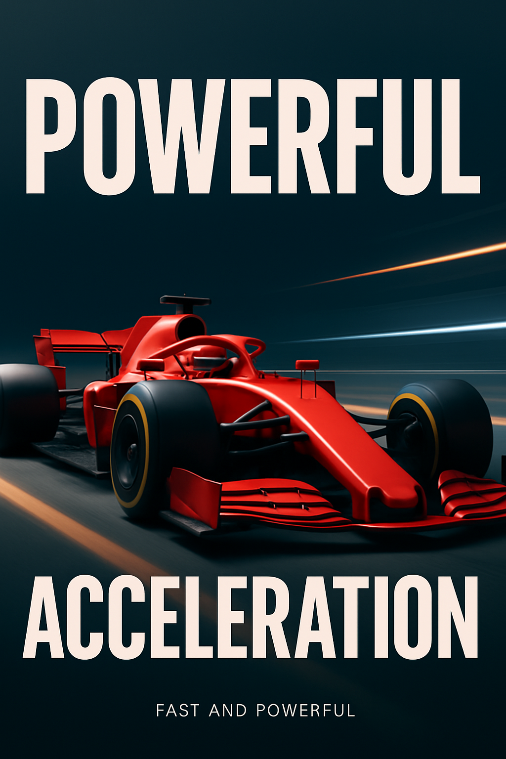 /Collection: , /by davooda/Type: PNG/A stunning 3D illustration of a red Formula One car accelerating on a night track, featuring motion blur and bold typography. The design combines minimalism with a modern aesthetic.