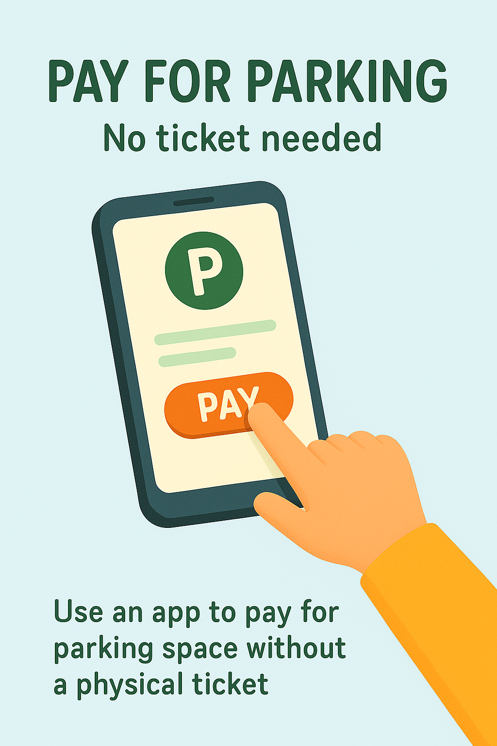 /Collection: /by davooda/Type: PNG/Informative graphic showcasing a mobile app interface for paying parking fees. The design is modern and user-friendly, aimed at simplifying the parking payment process.