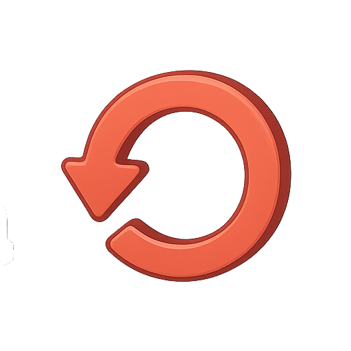 Modern refresh icon featuring a circular arrow shape in a vibrant coral color. Suitable for tech applications, user interfaces, and app design.