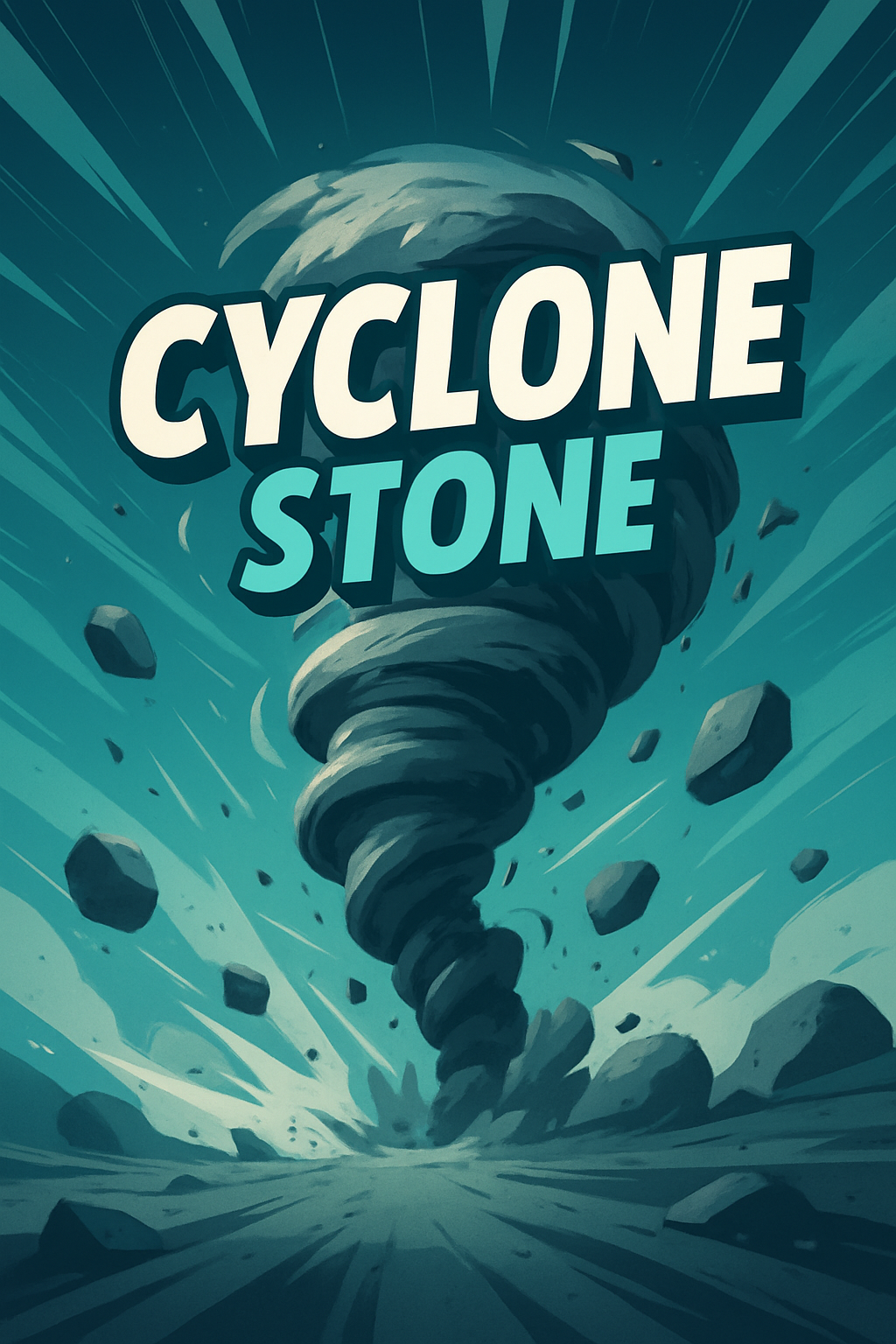 Dynamic Cyclone Stone Illustration with Bold Typography