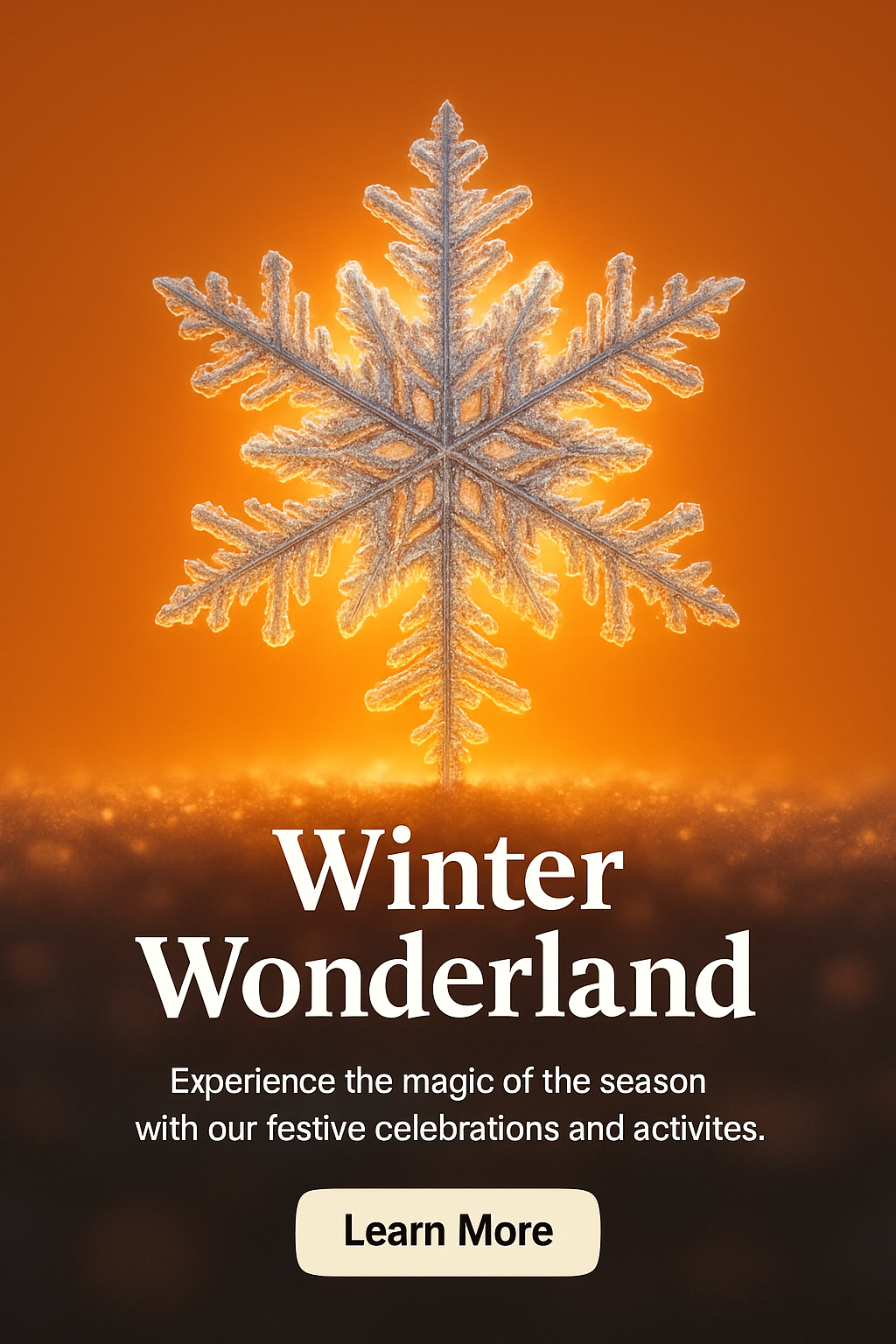 A visually striking holiday-themed graphic featuring a snowflake against a warm background. Ideal for promoting winter events and celebrations.