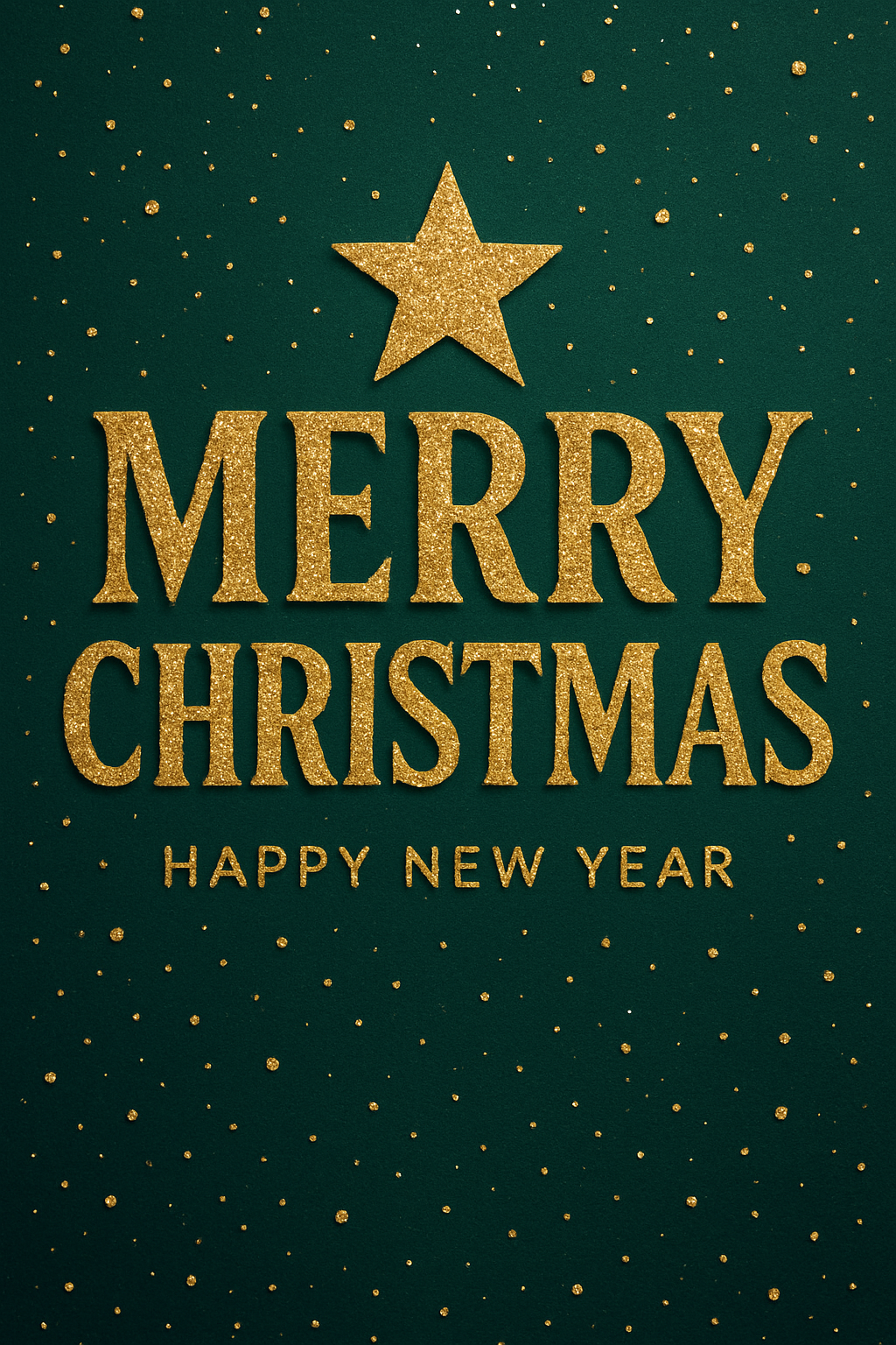 /Collection: /by davooda/Type: PNG/A stylish holiday greeting card featuring bold, glittery typography against a deep green background, perfect for seasonal celebrations and personal messages.